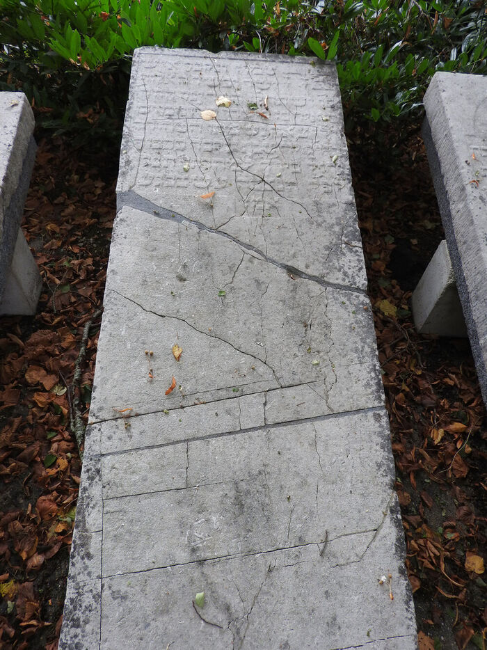 Hier ist verborgen/ Es ist verborgen und begraben ein Mann,/ rechtschaffen und untadelig, der Anfüher,/ Gemeindevorsteher und Führer. Der Vertreter der jüdischen Interessen in der Provins, der Chawer/ Me’ir, Sohn unseres Lehrers, Rabbiner Kalonimus/ seligen Angedenkens, seine Seele wurde rein ausgehaucht/ am 3. Tage der Woche, dem 14. Tewet (23.12.1693), und er wurde begraben mit großer Ehre/ am 4. Tage der Woche, dem darauf folgenden Ta453/ nach der kleinen Zeitrechnung. Seine Seele sei eingebunden in das Bündel des Lebens mit den anderen Gerechten im Paradies/ Amen
